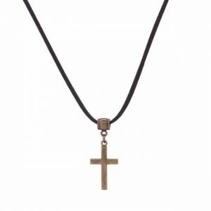 Camurça com cruz medalha niquelada ouro velho